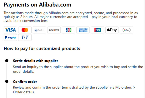 Discuss payment methods, such as bank transfers or escrow services, and agree upon terms that provide security for both parties. Consider using secure payment platforms like PayPal or Alibaba’s Trade Assurance for added protection.